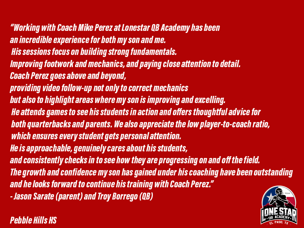 Are you serious about improving your QB skill set? The Lone Star QB Academy will make you a fundamentally sound quarterback!